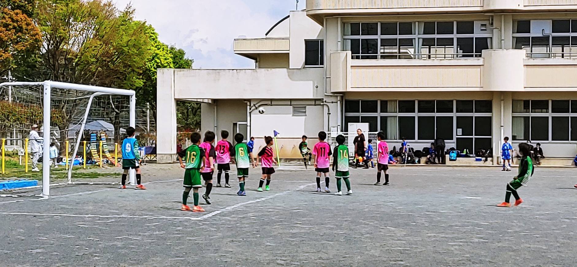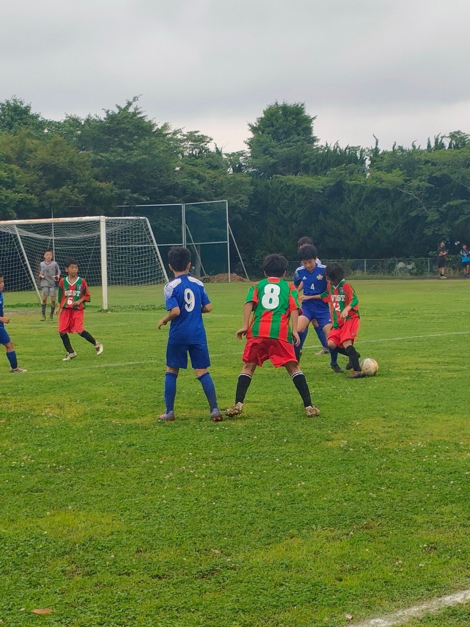 人工芝で降雨で濡れていて、転倒が多くなかなかでした。(他チームの子は転倒者少なかったですが?)